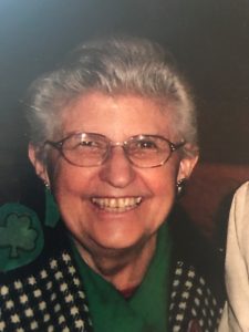 Liz is survived by her children, sons Thomas (Anne) and James (Helen), daughters Margaret (Mark) Zimmerman, Catherine (Jesse) Franklin; Ann (Edgar) Pottker, Ellen (Michael) Bouchard, and Jane (David) Trebilcock; grandchildren Patrick, Kathryn, Marie, Anna, Sophia, Molly, Andrew, Thomas, Andria, James, Jesse, Elizabeth, Nicholas, Michael, Matthew, Nora, Timothy, Colleen, Jeanne, Claire, Kevin, Peter, and Margaret; great-grandchildren Alice, Clara, Evan, Sara, James, Clare, Patrick, and Beatrice; sister, Marge Gallagher; sisters-in-law, Abbey, Irma, Bette, Billie and Evie, and many nieces and nephews. Liz was preceded in death by her husband, Thomas, daughter, Mary, and her brothers Bill, Vince, Jack, Jimmy, Pat and Joe.